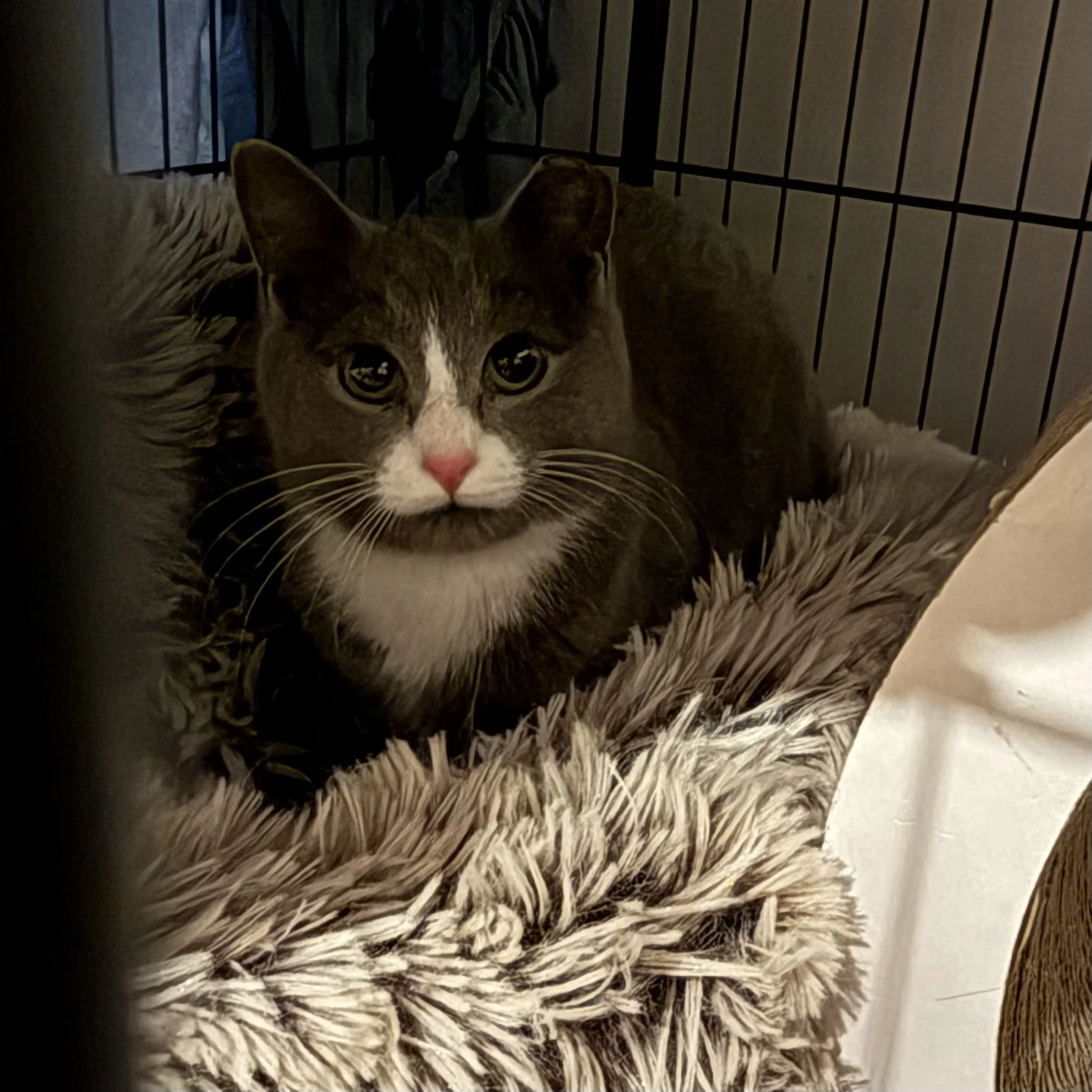 ADOPTED! “Gary” and his sister (not pictured) were not happy to be caught around the same time as the slightly younger Puffin. Both had upper respiratory infections that needed to be treated before getting adopted. Fortunately, they both came around and now have homes. These days Gary loves cheering on the Lions with his new dad!